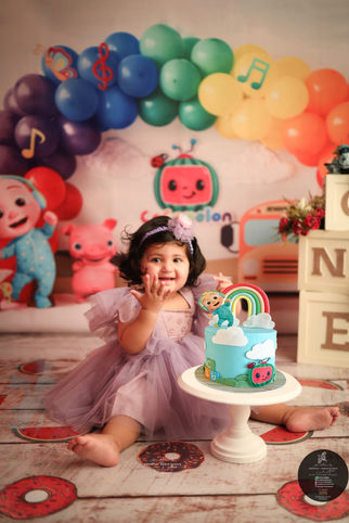 Celebrate your baby's first year with our Cocomelon-themed photo setup. Featuring beloved Cocomelon characters, colorful props, and a playful backdrop, one box props, colorful donuts, watermelons & vibrant flowers this setup captures the fun and joy of your little one's milestone year in a vibrant and engaging setting.