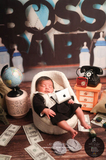 Celebrate your little boss with our Boss Baby-themed newborn photo setup. Our studio transforms into a stylish office scene with mini suits, ties, and playful business props. Each session captures the adorable charm and playful spirit of your newborn, creating fun and memorable photoshoots fit for a tiny executive.